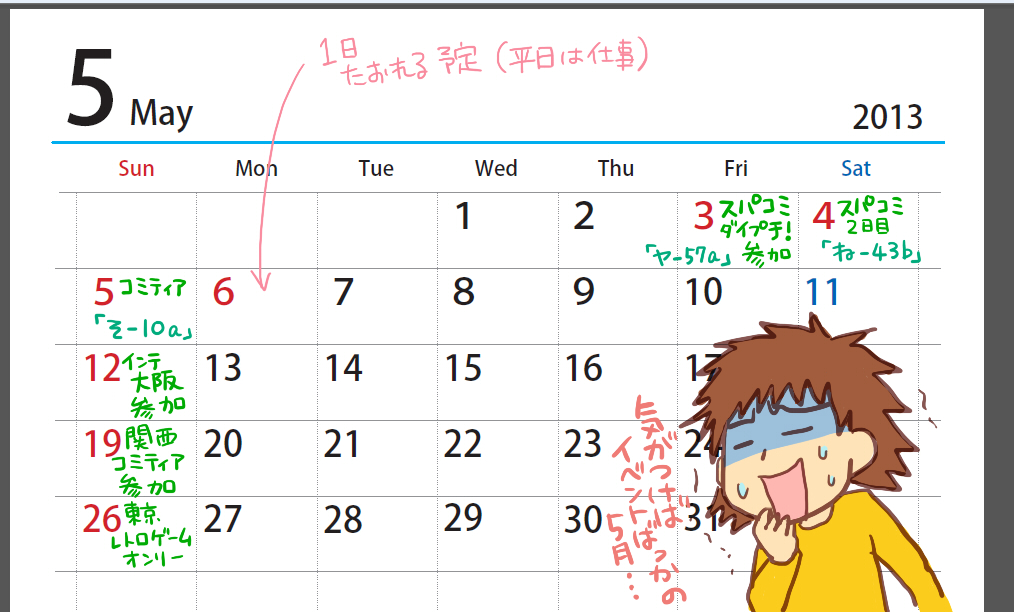 2日目、3日目のスパコミやコミティア、12日のインテックス大阪も楽しかったです!