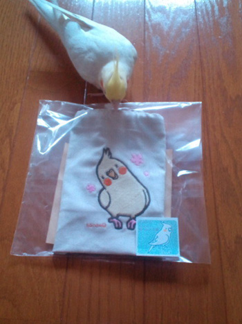 ↑グッズ見本です。残念ながら、オカメインコ(ホンモノ)はついてきません