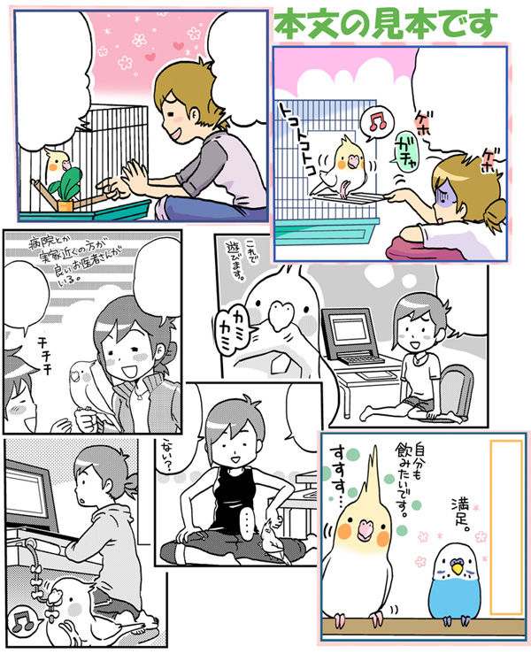 カラー口絵も描いたり、終始楽しく作業できました。オカメかわいい